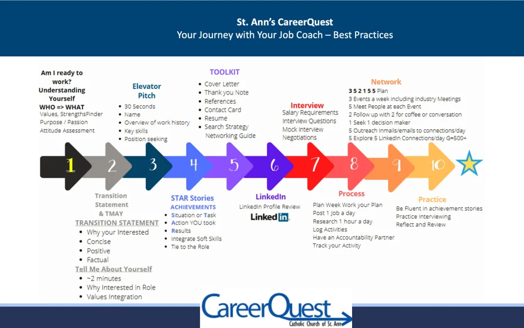 CareerQuest welcomes all those in job transition providing the exchange of information, connection, and best practices.