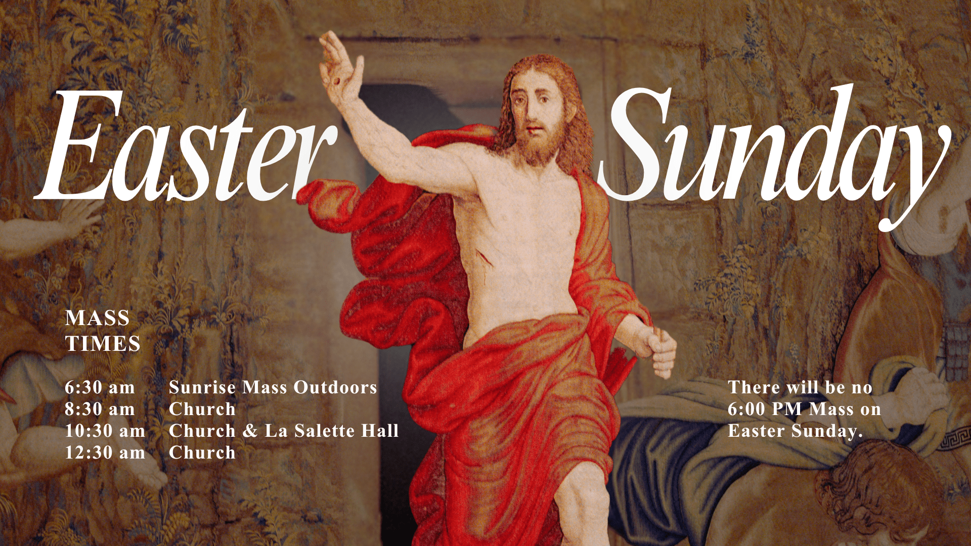 There will be no 6pm Mass on Easter Sunday.