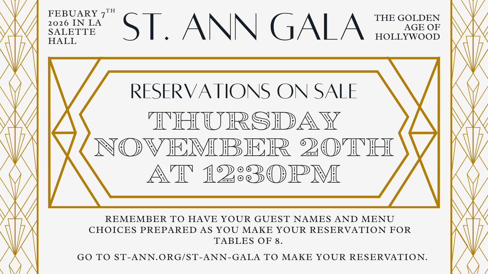 We’re so excited to announce Gala reservations go on sale THURSDAY, November 20th at 12:30pm!