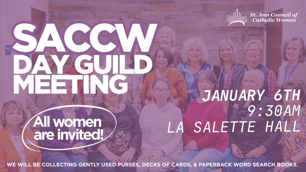 The St. Ann Council of Catholic Women (SACCW) is looking for applicants for its annual teen recognition award. Applicants must be graduating high school in May and a registered St. Ann parishioner. This is a faith and service-based award. Winners are chosen based on their essays and references. Participation in Life Teen is not required.
