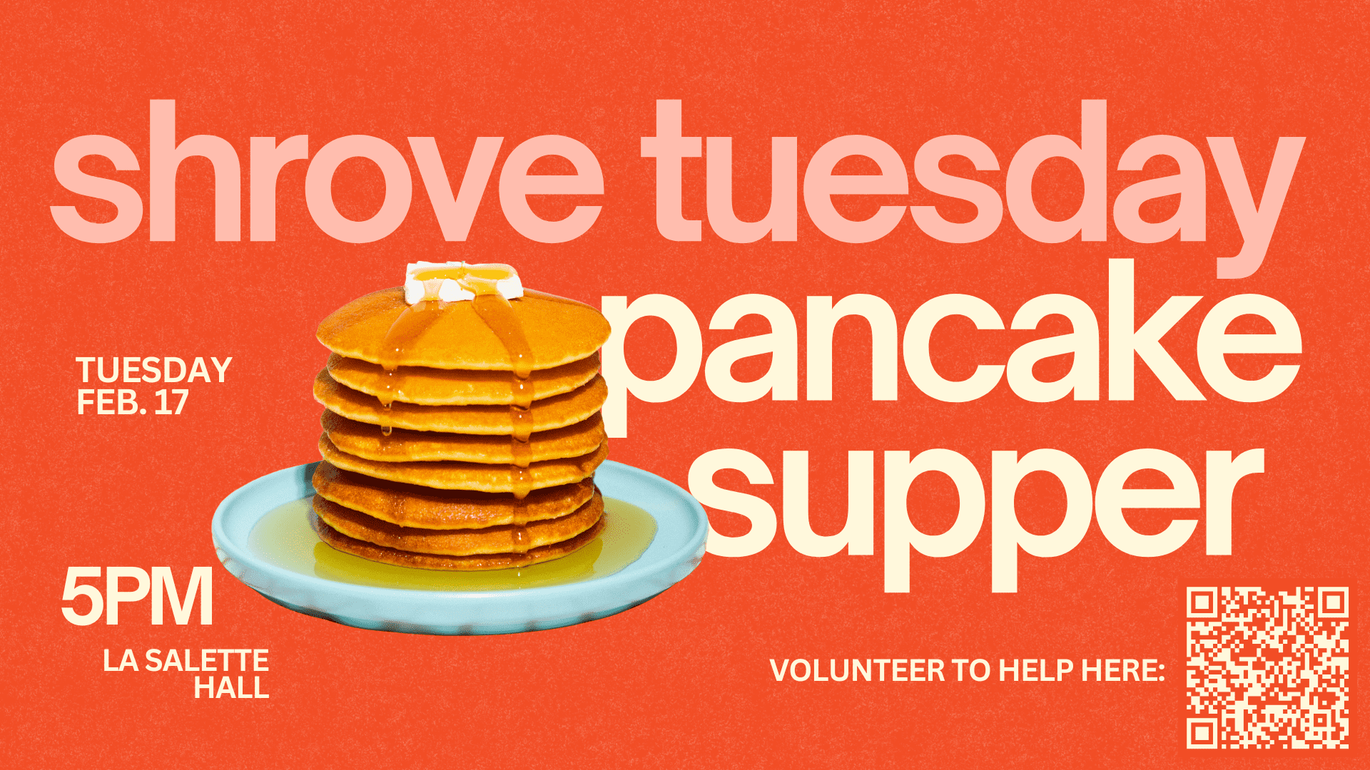 Join us on Tuesday, 2026, from 5–7 PM in LaSalette Hall for a fun evening of pancakes and fellowship before Lent begins!