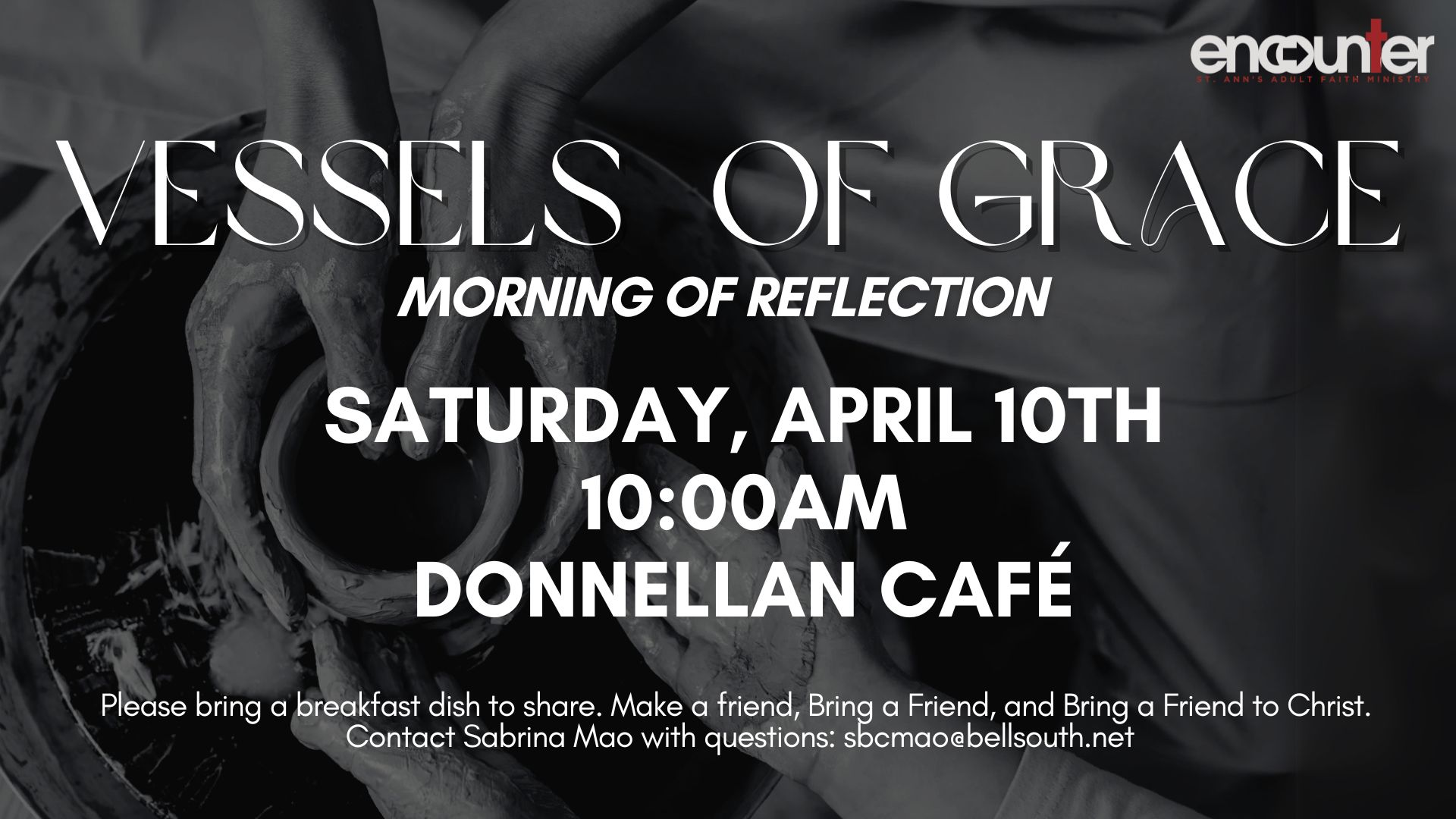 Please bring a breakfast dish to share. Make a friend, Bring a Friend, and Bring a Friend to Christ. Contact Sabrina Mao with questions: sbcmao@bellsouth.net